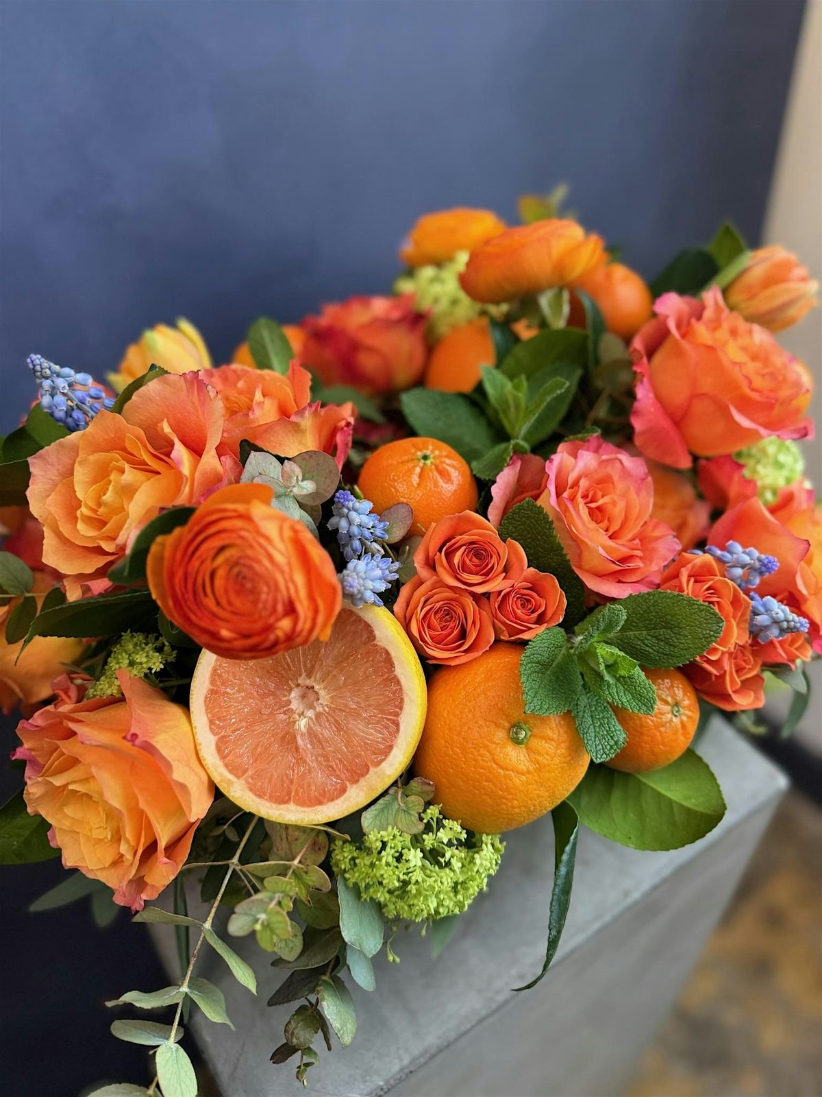 Each class revolves around a theme or type of flower. For example, ‘Peonies’ or ‘Jewel Toned Blooms’. The images on our website are representative of what a design might look like, but are not exact. In order to get you the most product, we hold off on ordering until a week before class to see what is available at the best price from our wholesalers. In classes that revolve around a certain flower, such as peonies, you can expect to be making a mixed bouquet highlighting that flower.