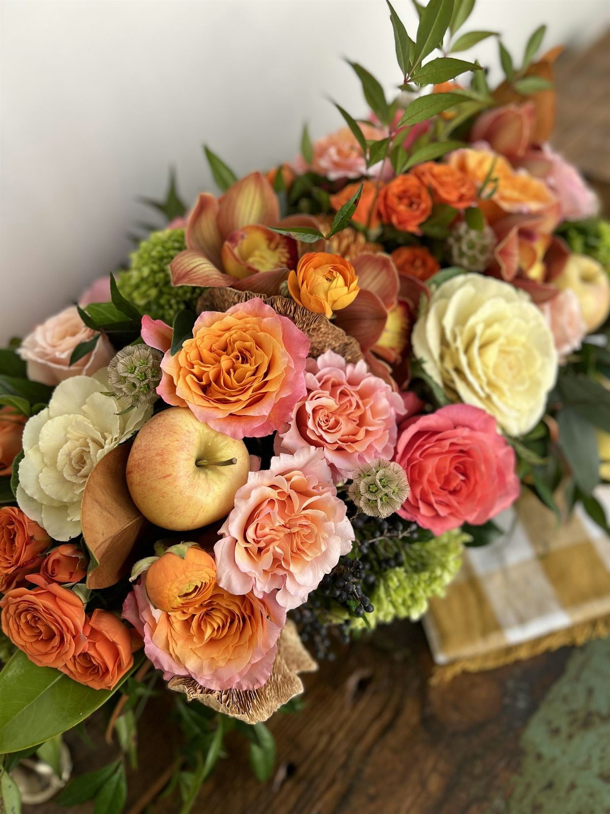 Each class revolves around a theme or type of flower. For example, ‘Peonies’ or ‘Jewel Toned Blooms’. The images on our website are representative of what a design might look like, but are not exact. In order to get you the most product, we hold off on ordering until a week before class to see what is available at the best price from our wholesalers. In classes that revolve around a certain flower, such as peonies, you can expect to be making a mixed bouquet highlighting that flower.