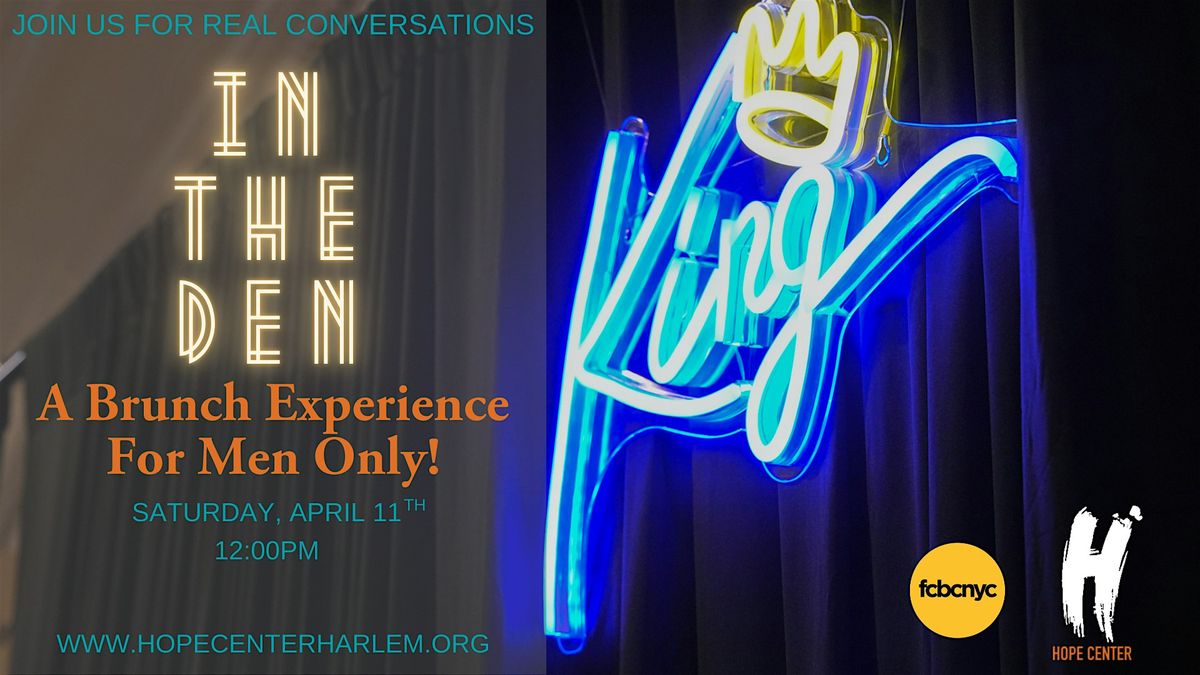 Brothers! This is for you. Join the HOPE Center on Saturday, April 11th for In The Den: THe King's Table Brunch Experience. Come out and enjoy food, fellowship, and great conversation. Doors open at 11am. Registration is required.