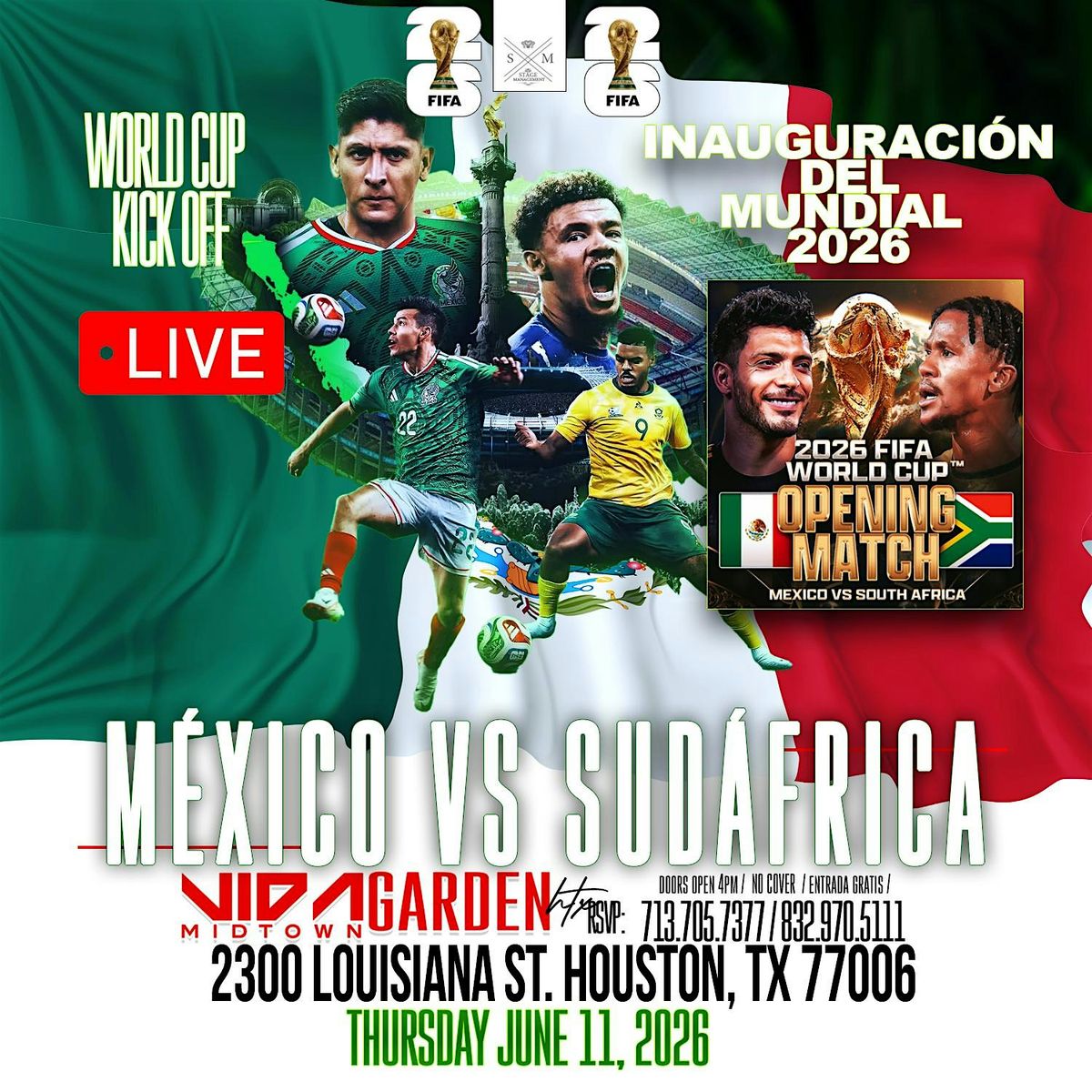 Join us at Vida Garden Midtown for the official World Cup Opening Match Watch Party as Mexico takes on South Africa LIVE on all screens.