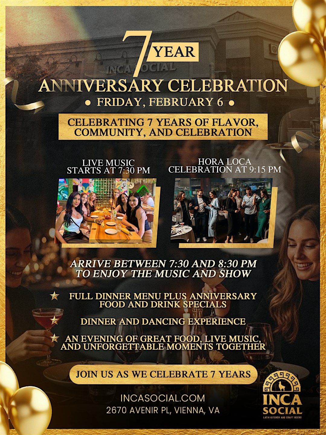 Join us as Inca Social Vienna celebrates 7 incredible years of flavor, community, and unforgettable moments! This special anniversary night is all about great food, live music, dancing, and high-energy vibes.