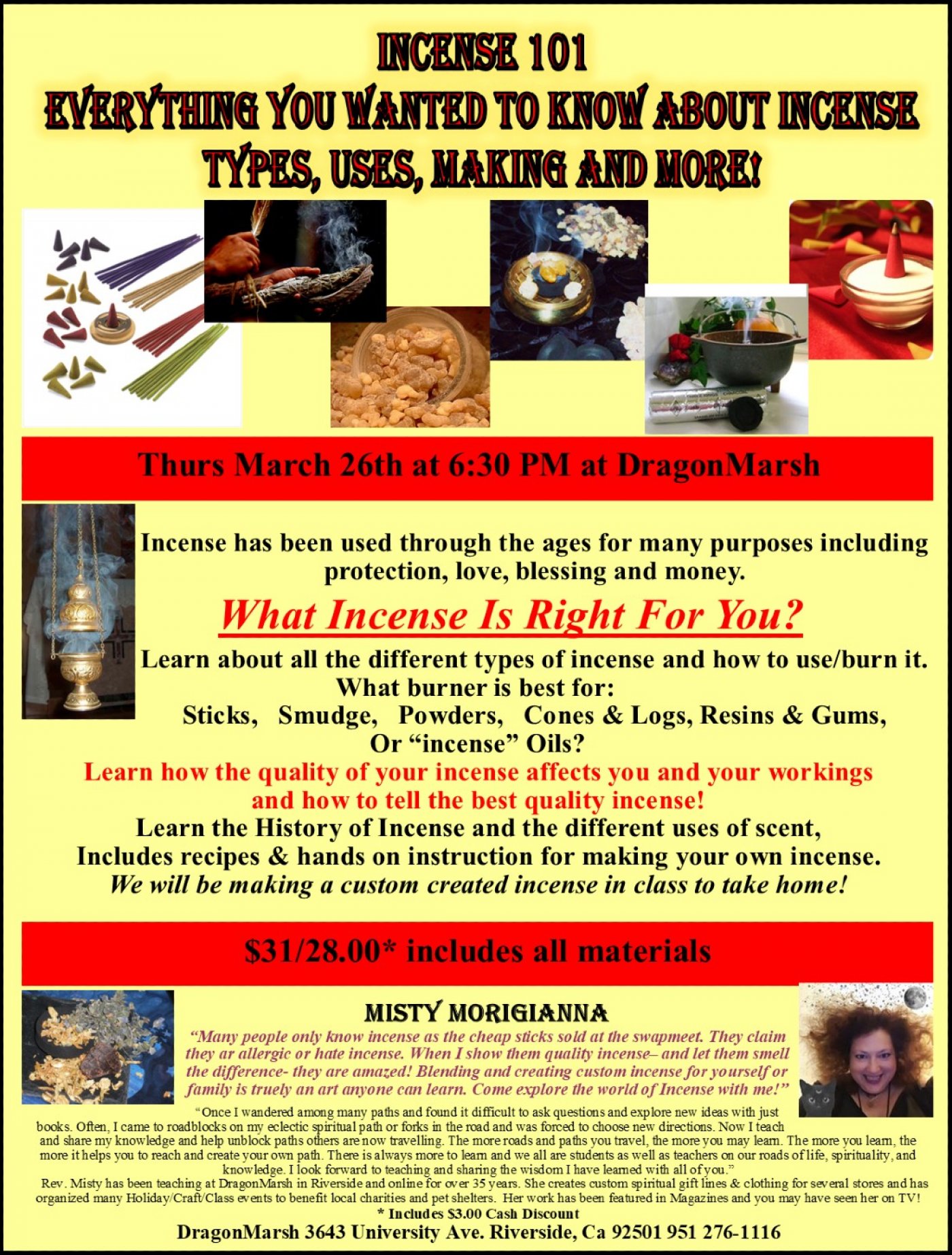 Incense has been used through the ages for many purposes including protection, love, blessing and money.