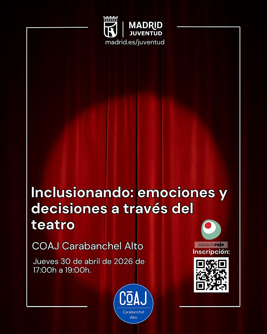 No se requiere experiencia previa en teatro. La actividad está diseñada para fomentar la participación, la inclusión, el aprendizaje colectivo y el desarrollo personal en un entorno dinámico y cercano.