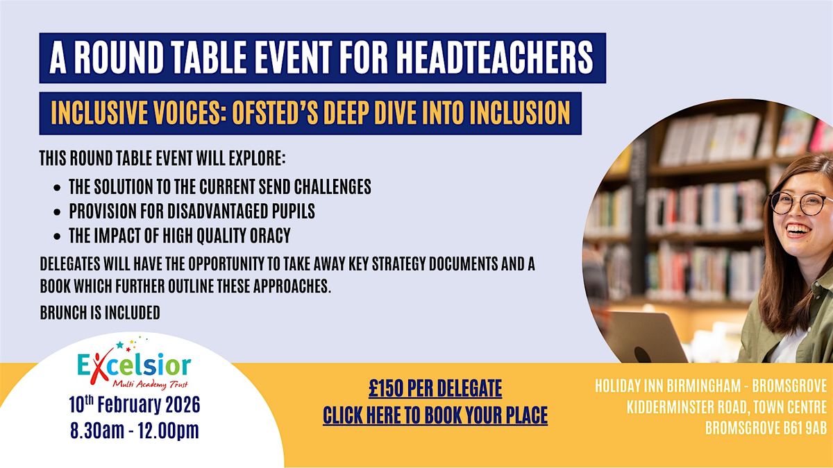 This is a MAT Masterclass focusing on Ofsted's deep dive into inclusion. The fee for this event is £150 per person, breakfast included.About this Event