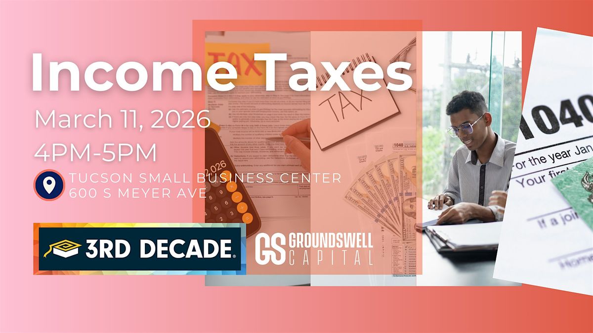 Join us to better understand income taxes and learn how to confidently prepare, plan, and avoid common mistakes. A financial mastery workshop series in partnership with Groundswell Capital and 3rd Decade.