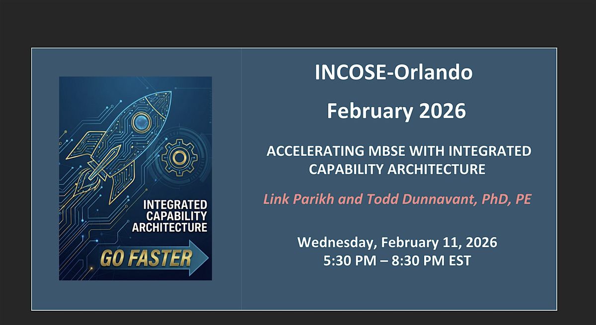 Join us this month for a practical MBSE session on Integrated Capability Architecture - an approach designed to help teams launch new programs faster, align capabilities and services early, and support the DoD push to βgo fasterβ without losing rigor.