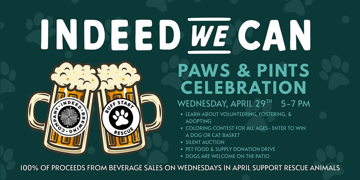 Join Ruff Start Rescue at Indeed Brewing Company on Wednesday, April 29th, from 5-7 pm!
