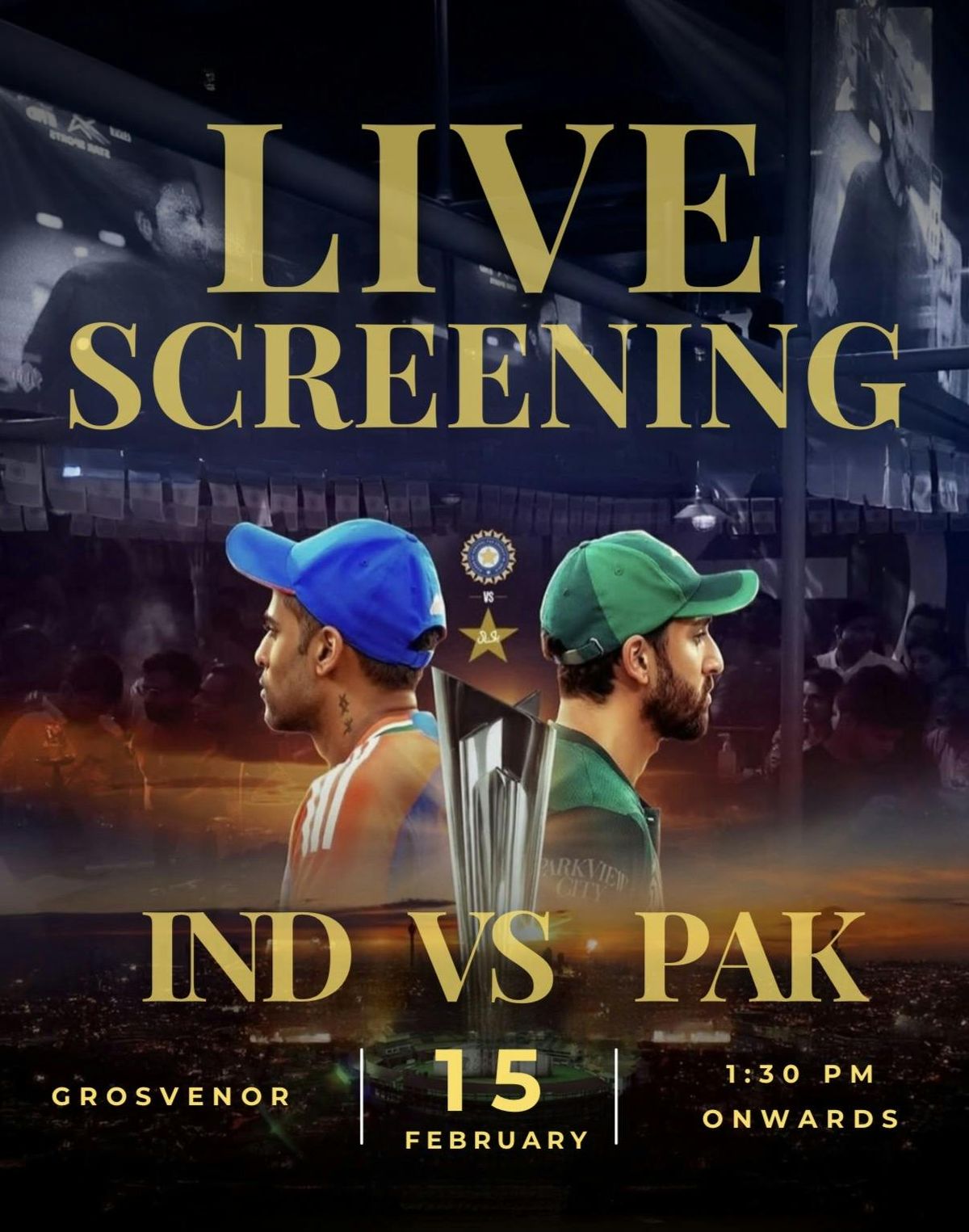 Get ready for the biggest cricket clash! Join us for an electrifying atmosphere as we watch India take on Pakistan LIVE at Grosvenor Bar, Oxford Rd! ??