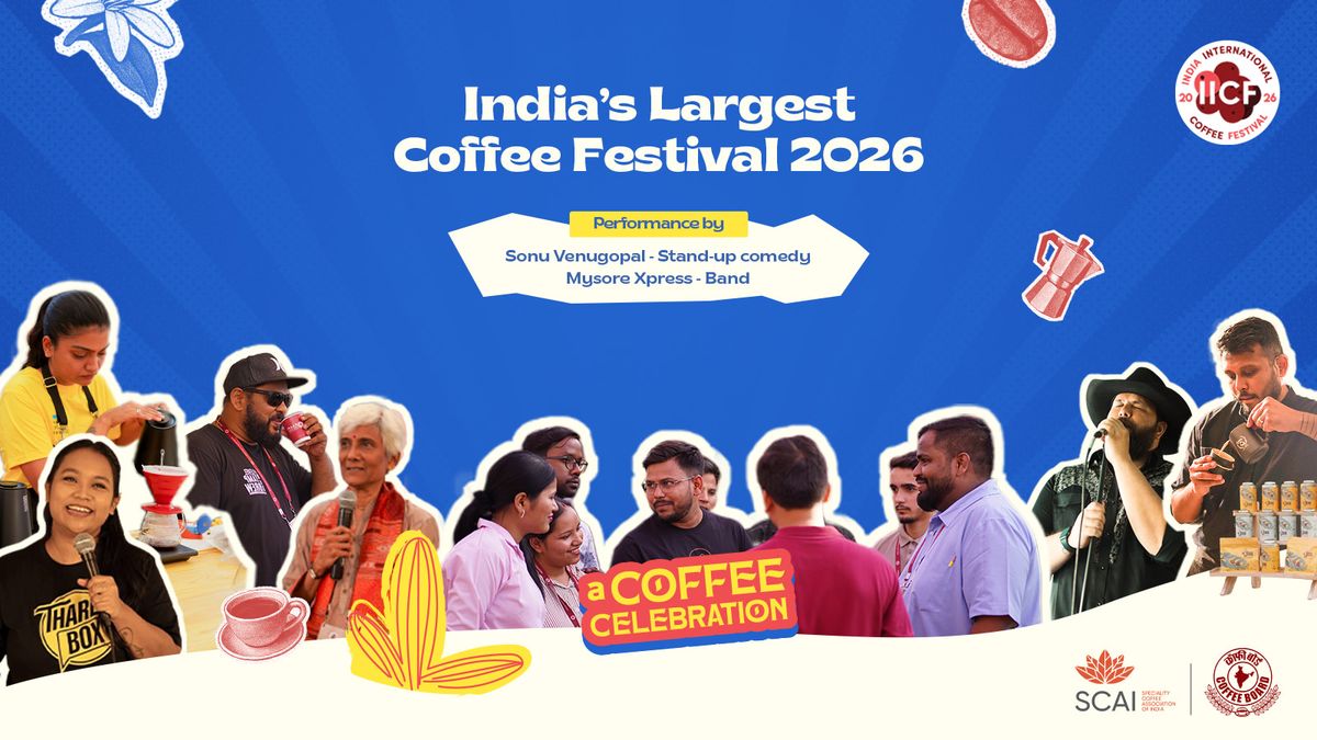 The aroma. The buzz. The joy of a really good brew. It’s all coming alive at the India International Coffee Festival 2026, bigger and better for every coffee lover!Step into a space filled with flavours, creativity, and good conversations as some of India’s finest roasters, baristas, and coffee brands come together under one roof.What’s waiting for you?* Sip on handcrafted brews* Discover new coffee trends* Learn what makes every cup specialAnd because great coffee deserves great atmosphere, there’s more to look forward to:* A stand-up comedy set by Sonu Venugopal – February 12* A high-energy drum jam by Roberto Narain - February 14* Soulful live music by Sheridan Bass (Mudroads) and Mysore Xpress – February 14So grab your passes, bring your coffee gang, and make some great memories, because life’s too short for average coffee.