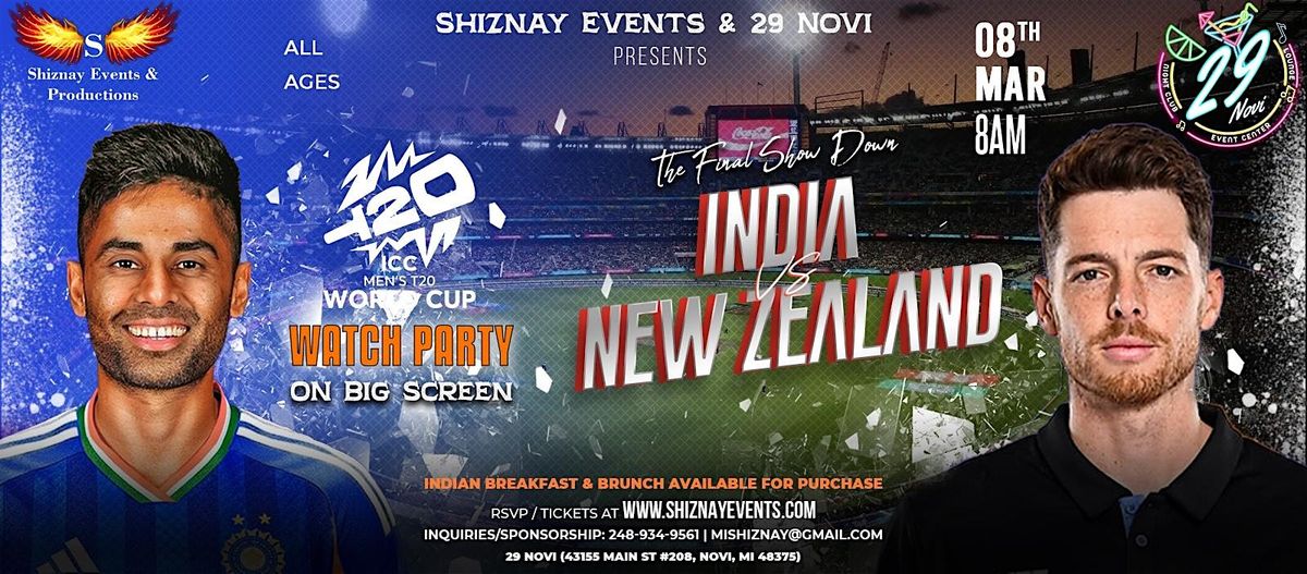 Get ready for an epic clash at 29 Novi! Join us on March 8, 2026 at 8:00 AM (EST) for the ultimate face-off between India and New Zealand. It's going to be a thrilling match you don't want to miss. Bring your friends, wear your team colors, and let's make some noise together!