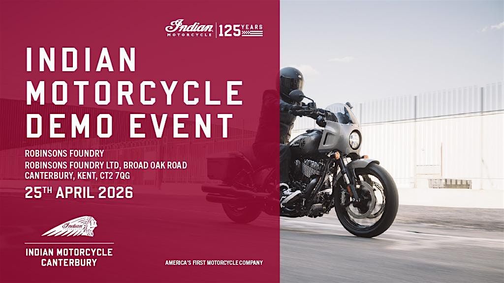 Experience the electrifying power of the all-new MY26 Indian Motorcycle range at this exclusive demo ride event, taking place at Indian Motorcycle Canterbury on Saturday 25th April.