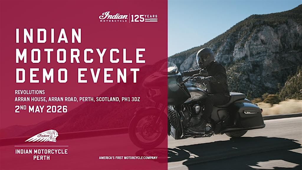 Experience the electrifying power of the all-new MY26 Indian Motorcycle range at this exclusive demo ride event, taking place at Revolutions - Indian Motorcycle Perthshire on Saturday 2nd May.