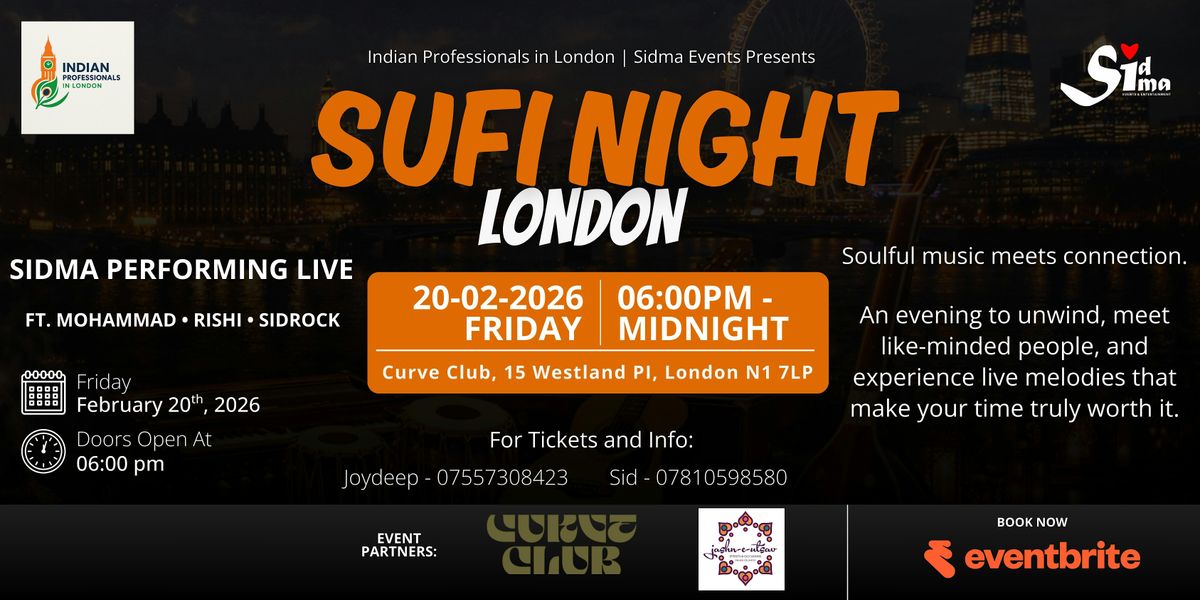 Join us for a soulful evening of SUFI night and Indian Professionals in London connections with an amazing live band - Sidma performing live