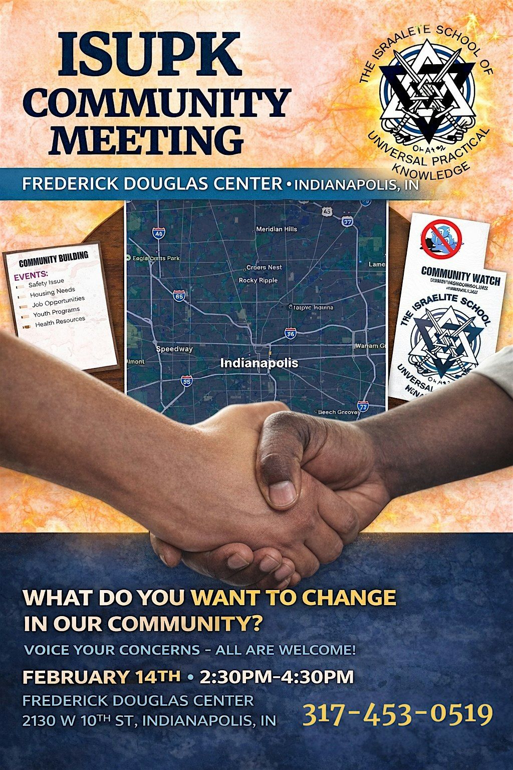 A community meeting for the people to meet. Bring your concerns so we as a community can come together for a solution.
