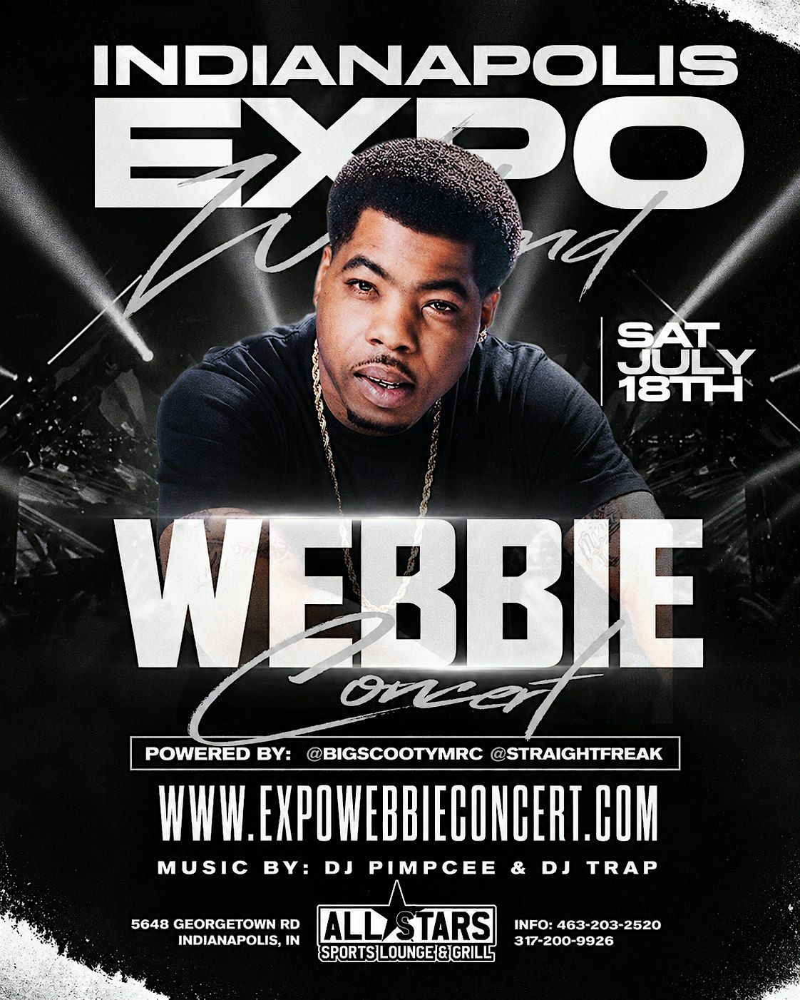 Get ready, Indy! Join us Sat July 18th at Allstars for an epic WEBBIE CONCERT like no other. This is an in-person event where you can vibe live and soak up the energy. Don’t miss out on a night full of beats, fun, and great company. Mark your calendars and bring your crew for a memorable night at the Indianapolis Expo!