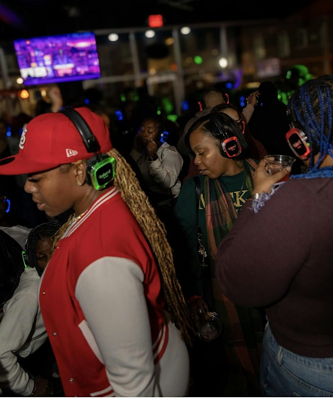 When you arrive you’ll receive a pair of wireless headphones. You can adjust the volume and choose between up to three DJ’s with a flip of a switch. Each headset has a color (BLUE, RED, GREEN) LED that shows what channel you are listening to, so you can dance along with those listening to the same DJ. It’s super social; just lower the volume or take the headphones off to talk to that girl or guy. There’s no loud music that you have to talk over. Plus, there’s no ringing in your ears when you leave!