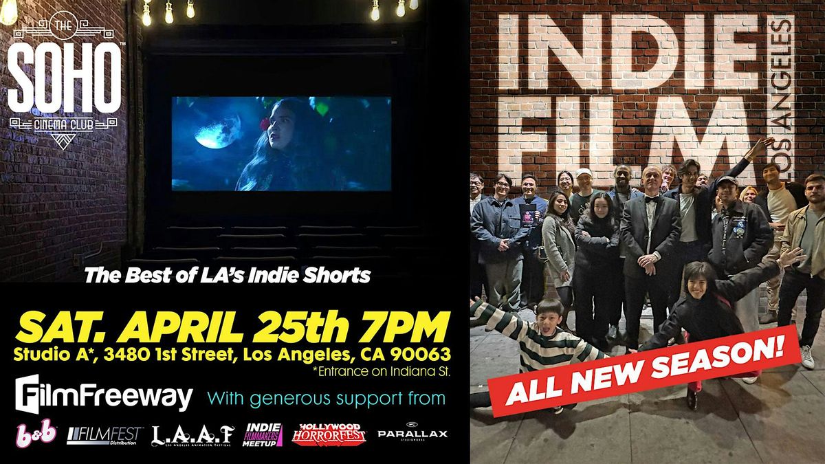 Join us for the latest, exciting season of INDIE FILM LA. Screening the best shorts in L.A. and Southern CA. See an eclectic mix of genres and styles at the SOHO CINEMA CLUB. All presented by the filmmakers in question. All filmmakers introduce their work to an audience of their peers and like-minded filmmakers.