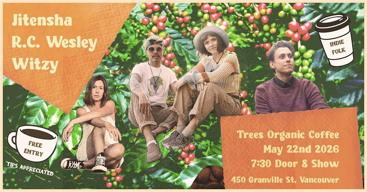 Join us for an intimate evening of live indie folk at Trees Organic Coffeehouse—one of Vancouver’s coziest listening spaces.