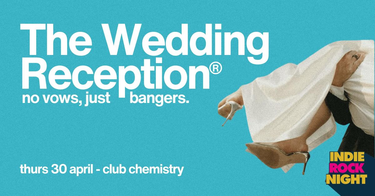 weβre throwing the wedding reception of your dreamssss !!no vows, long speeches or small talk, we're only keeping the good bits. expect free wedding cake, champagne toasts, a bouquet toss + wedding & indie bangers allll night long x+ dress as a bride, groom or wedding guest for a free shot π