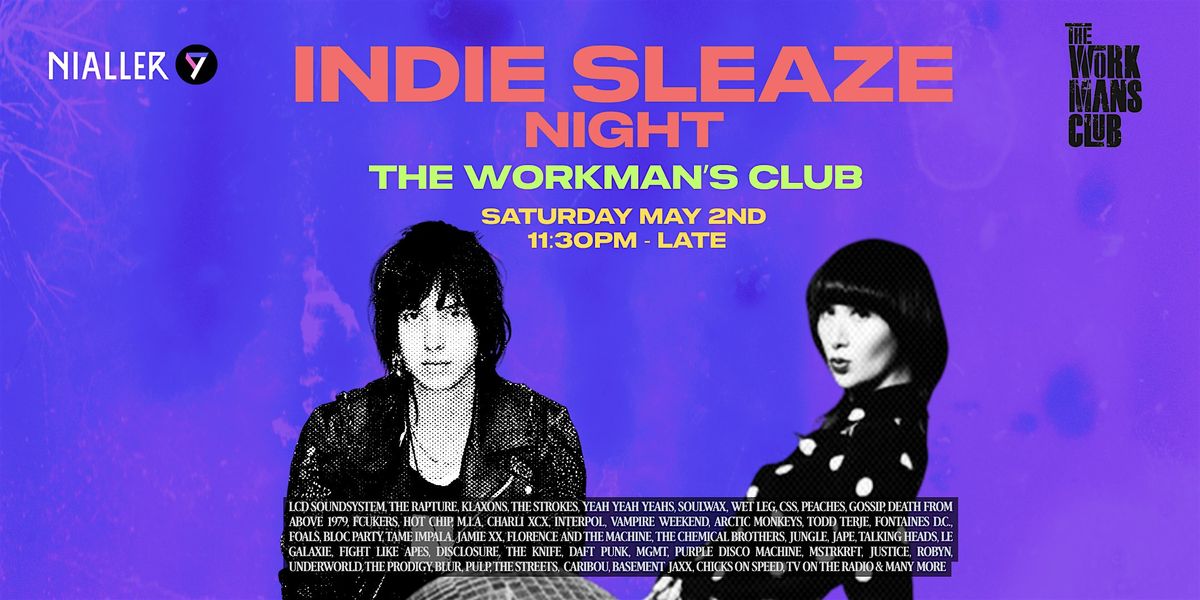 Nialler9's nostalgic indie sleaze club night returns to The Workman's Club Main Room on the May Bank Holiday weekend for another floor-filling evening of the music that defined the first decade of indie music from the early 2000s.