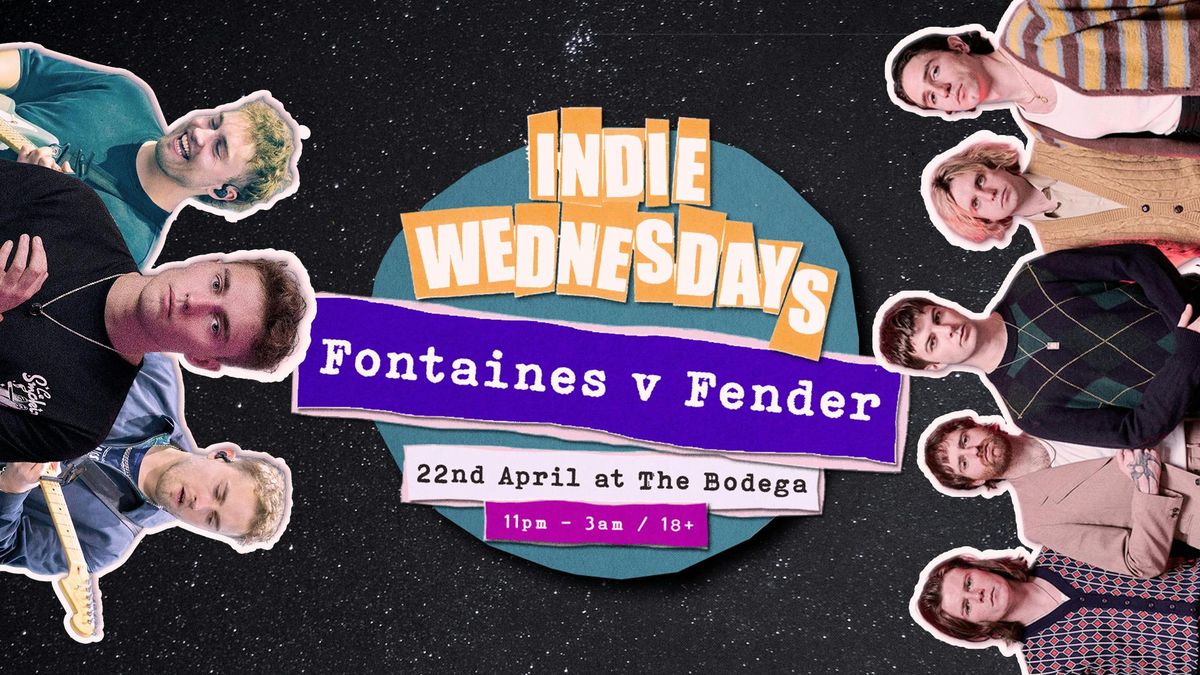 No reining it in here - it's Indie Wednesday! A massive versus comes to Pelham Street in a super duper Fontaines v Fender special, with loads of bangers to play from 7 ginormous indie albums right here at Bodega on Wednesday 22nd April. THE ORIGINAL INDIE WEDNESDAYS. PREPARE FOR LIFT-OFF! 🚀