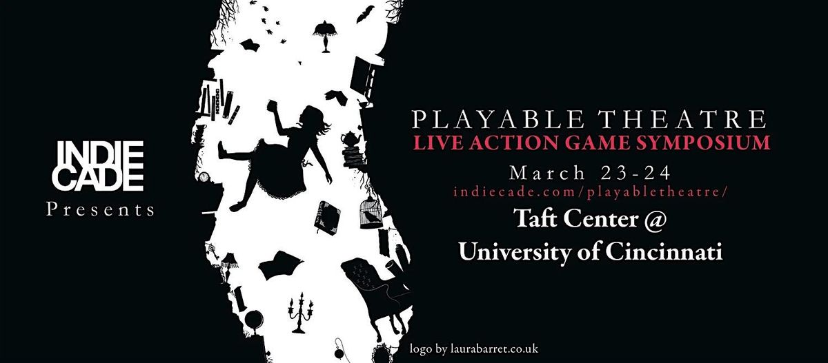 The IndieCade Playable Theatre Symposium 2026 is a two-day, in-person series of events for scholars, students, creatives, and the curious, exploring the ever-evolving medium of playable theatre. Virtual-reality performance, live-action role-play, jubensha, improvised digital escape rooms, and alternate reality games all fall under this umbrella. Through workshops, panels, and performances, the symposium will provide a forum for embodied experiences that grant their audiences meaningful agency and remain in dialogue with both games and the theatre arts. This event is sponsored by the UC Game Lab in the College of Arts & Sciences at the University of Cincinnati, in collaboration with the Taft Research Center, which hosted the Role-Playing the Humanities Summit in 2025. It is a joint project of Playable Theatre International and IndieCade, which have been co-hosting the online version of the symposium since 2021.