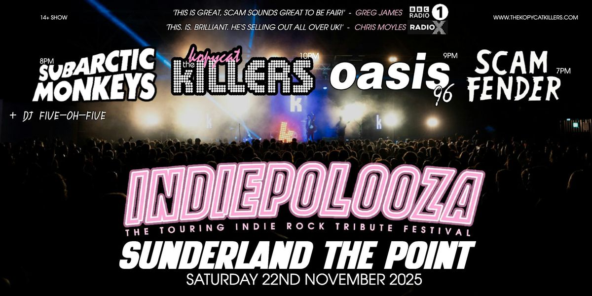 Indiepalooza is an amazing touring indie-rock tribute festival featuring leading tributes to the Killers, Arctic Monkeys, Oasis and Sam Fender, all on night. This has sold out 1000 cap+ venues all over the country and in it’s 3rd year.