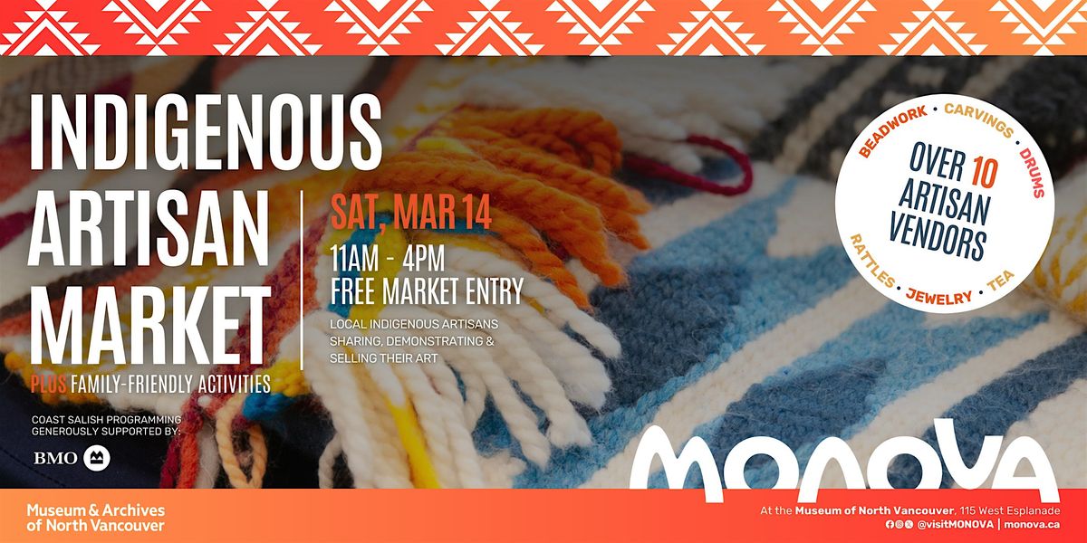 Artists for our spring market include beaders, carvers, jewelry makers, wool weavers, and more! PLUS, from 12-3pm participate in family activities, including Coast Salish wool weaving.