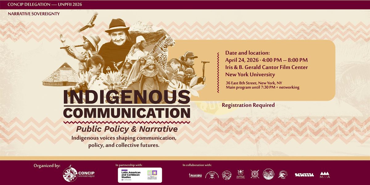 This public event is an initiative of CONCIP (Comisión Nacional de Comunicación de los Pueblos Indígenas de Colombia), organized in the framework of the UN Permanent Forum on Indigenous Issues (UNPFII 2026), in collaboration with New York University (NYU) through the Center for Latin American and Caribbean Studies (CLACS).
