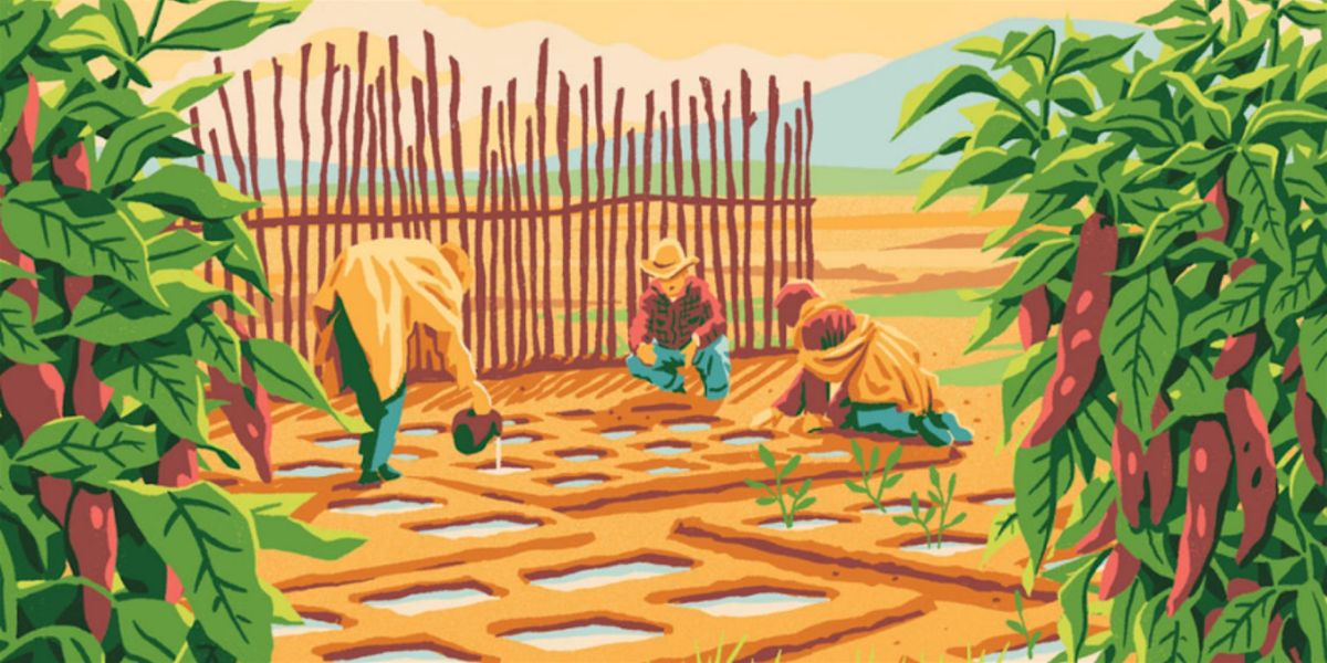 "The indigenous people of Zuni Pueblo, New Mexico, have used the waffle garden method for thousands of years as an effective way to garden without using high amounts of precious water resources. The technique uses compacted grids, dug and shaped just below ground level, with walls of varying heights." You can learn more about waffle gardens here.