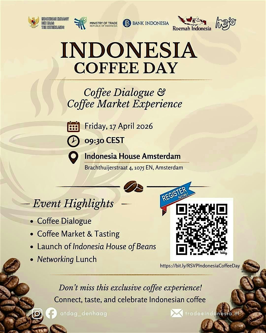 Join Indonesia Coffee Day — Coffee Dialogue & Coffee Market Experience in Amsterdam. This complimentary event brings together coffee importers, roasters, café owners, and industry professionals to explore Indonesian specialty coffee and business opportunities.