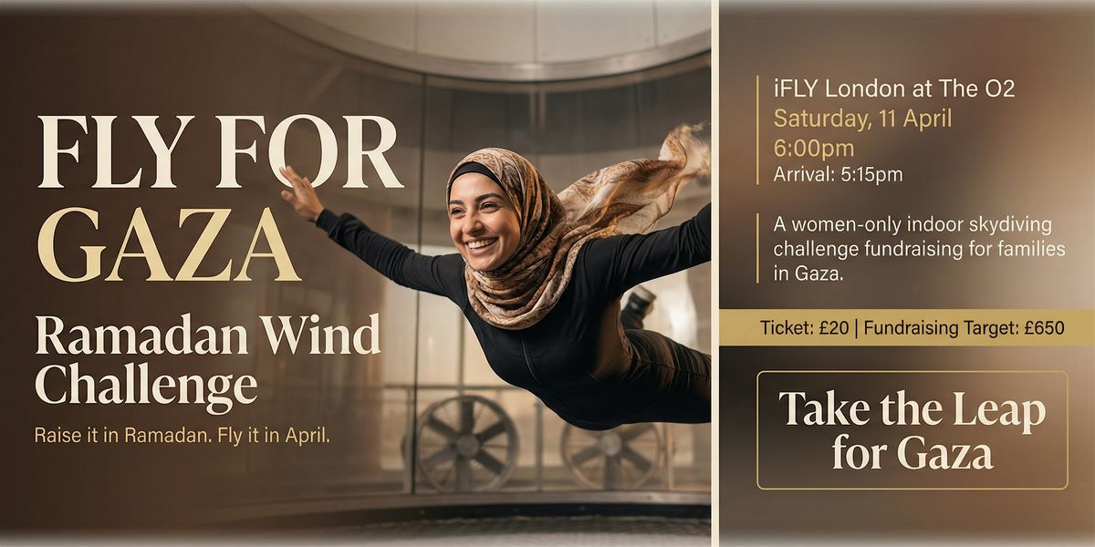 Fundraise with purpose in Ramadan, then fly for Gaza in April! Take on an indoor skydiving challenge at iFLY Manchester for a powerful cause