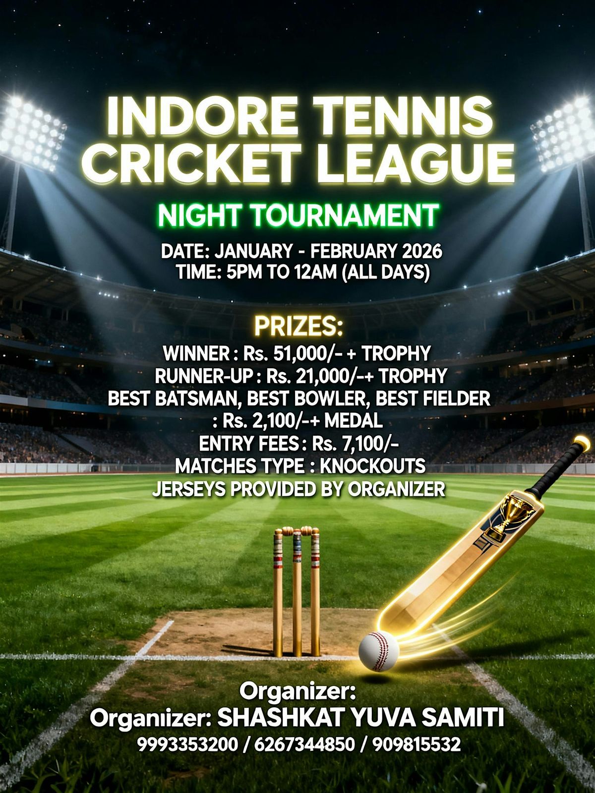 Get ready for an electrifying experience under the stars with our Night Cricket Tournament!About this Event