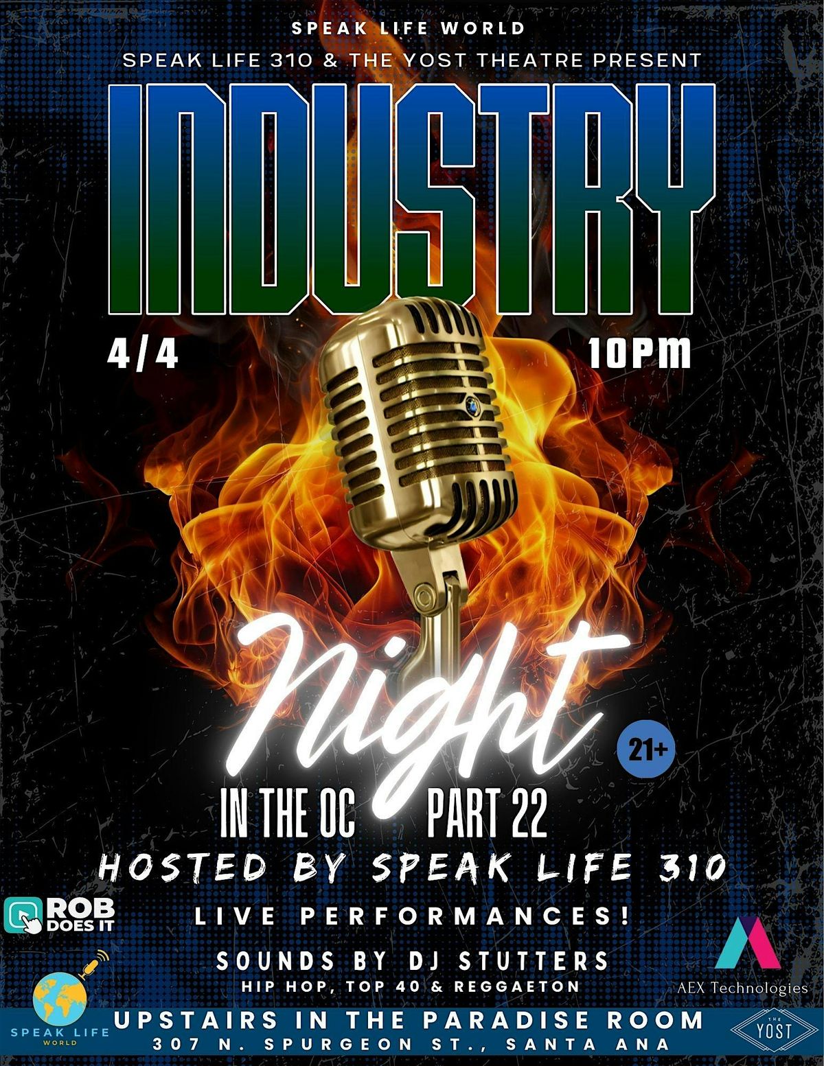 Speak Life 310 is the driving force behind “Industry Night In The OC!,” a dynamic nightlife-and-music showcase series that takes place in Orange County (notably at the Yost Theatre in Santa Ana). The event is designed to spotlight unsigned and up-and-coming talent in Southern California, bringing together live performances, DJ-sets (hip-hop, Top 40, reggaetón), models, photographers, and vibrant social energy.