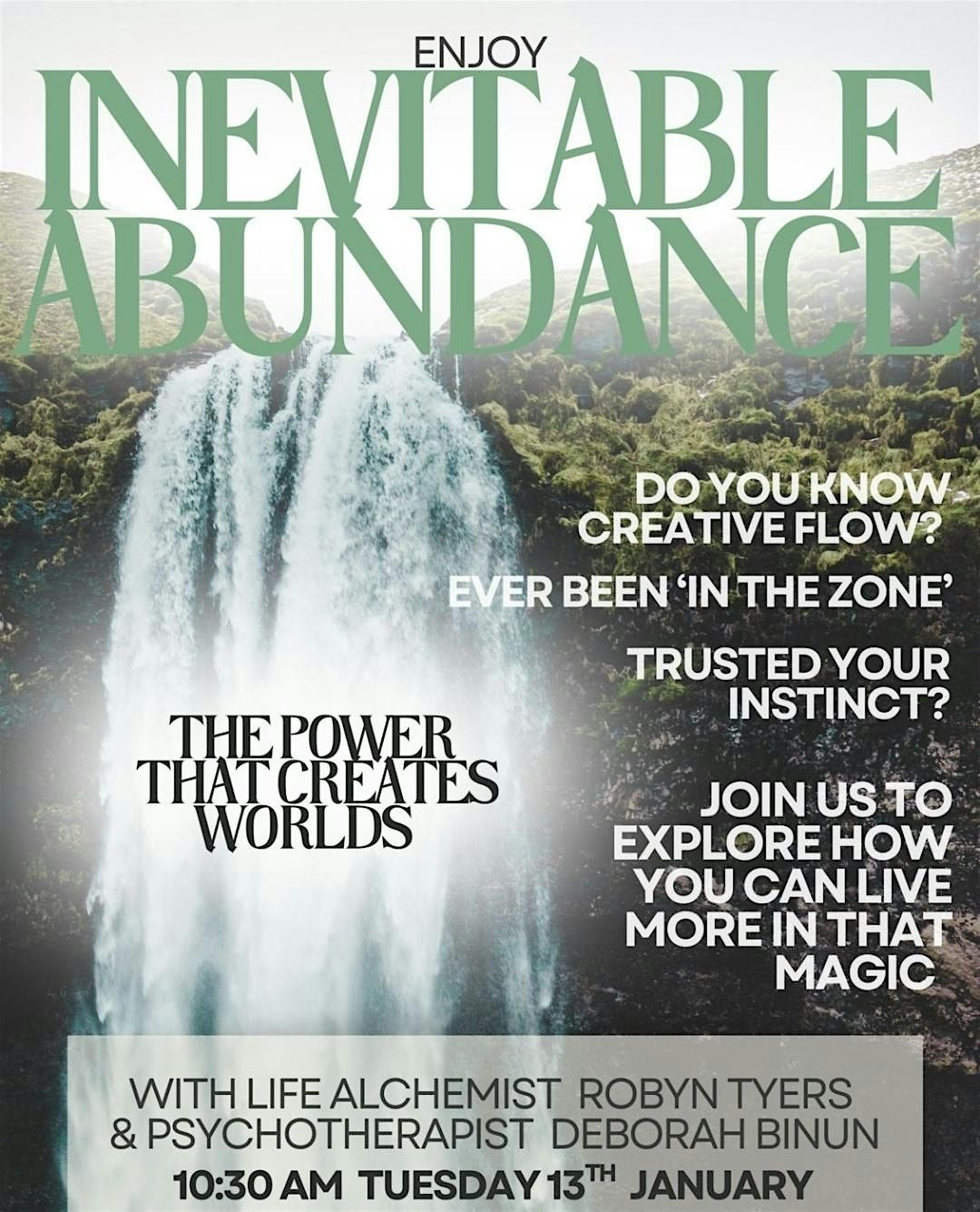 The understanding explored in these fortnightly sessions is life changing leading to a life of more ease, flow and abundance!