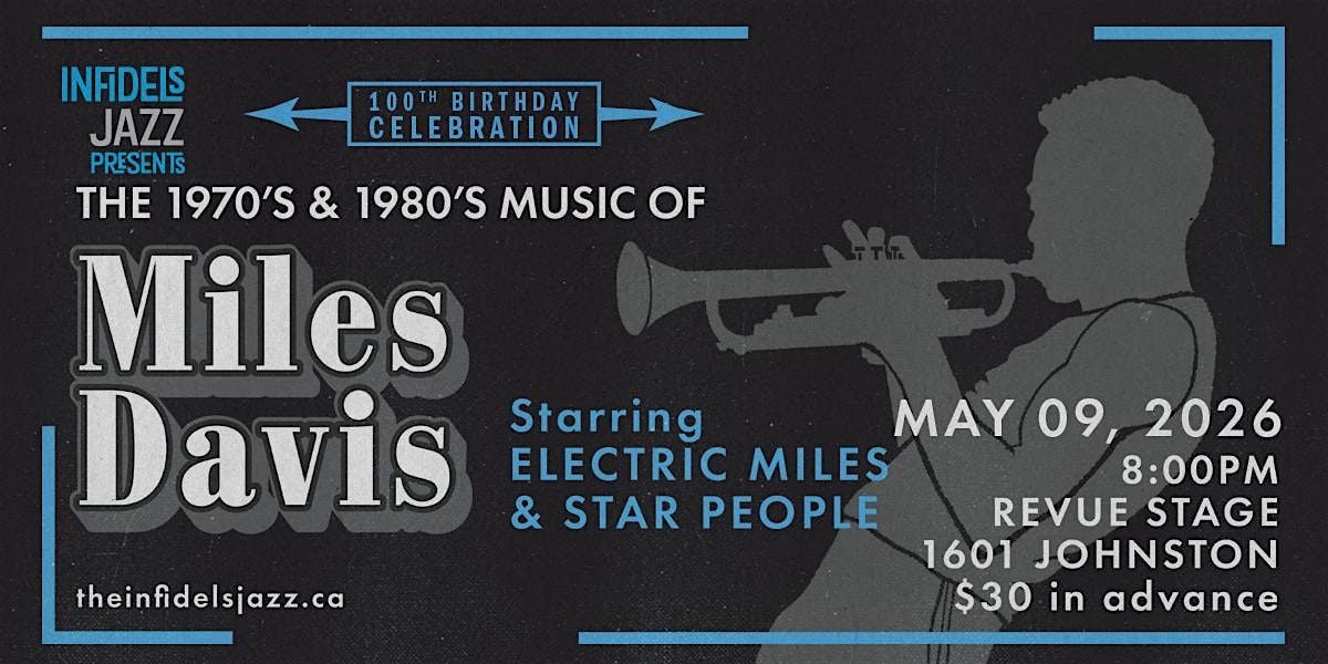 Vancouver is celebrating the 100th birthday of Jazz icon Miles Davis this May with a series of events covering every era of this musical trailblazer. On May 09th, Electric Miles (feat. Ron Samworth & Andre Lachance) will peform music from seminal 1970's Miles albums like Bitches Brew & On the Corner, and Star People (led by Feven Kidane) will perform music from great 1970's albums like Amandla & We Want Miles.