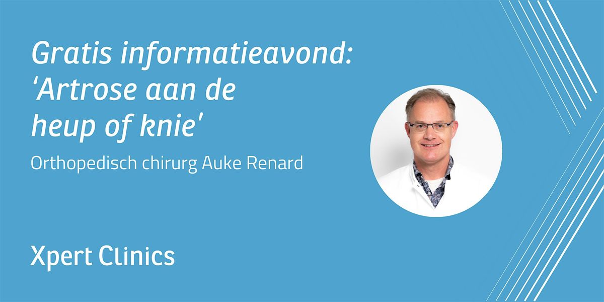 Op dinsdagavond 31 maart geeft orthopedisch chirurg Auke Renard een voorlichtingsavond over heup- en knieklachten in Apeldoorn. Er wordt verteld over de oorzaak van de klachten, hoe u voorkomt dat ze verergeren en hoe ze te verhelpen zijn met zowel niet-operatieve behandelingen als operatieve behandelingen. Er wordt ook inhoudelijk ingegaan op operatietechnieken, prothesematerialen en het hersteltraject.