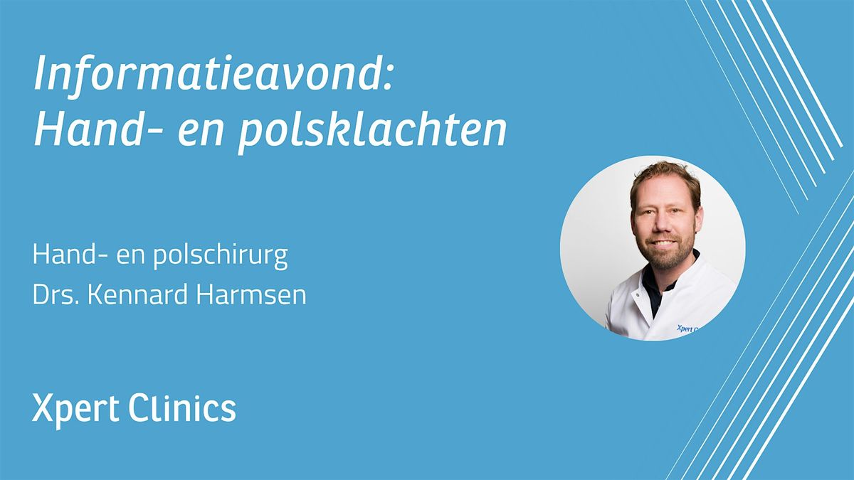 Op woensdagavond 6 mei geven hand- en polschirurg Kennard Harmsen een voorlichtingsavond over hand- en polsklachten in Amsterdam. Er wordt ingegaan op de mogelijke oorzaken van uw klachten, hoe u kunt voorkomen dat deze verergeren en welke behandelmogelijkheden er zijn, zowel zonder operatie als operatief. Ook komen operatietechnieken, gebruikte materialen en het hersteltraject uitgebreid aan bod.