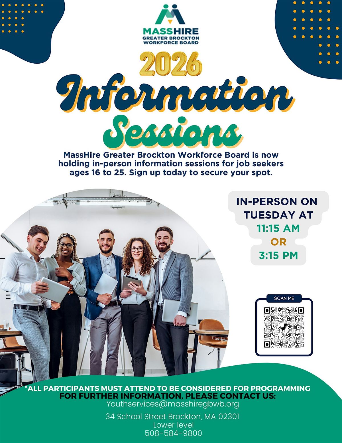 MassHire Greater Brockton Workforce Board is hosting an in-person Information Session for youth ages 14-24.About this Event