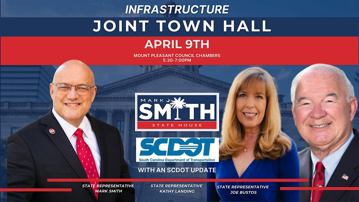 Join State Representatives Smith, Landing, and Bustos for a conversation on infrastructure in the Lowcountry. We'll hear from each of the representatives as well as SCDOT leadership . Attendees will have an opportunity for Q&A at the end.