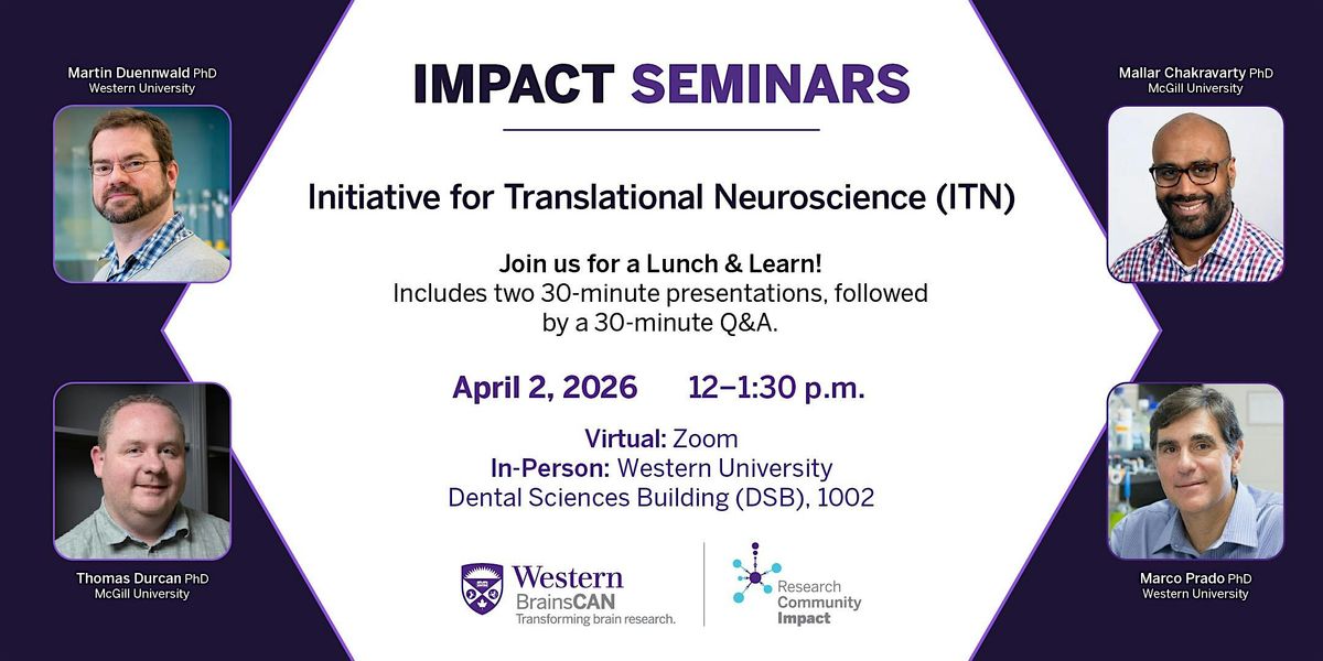 ITN Lunch and Learn hosted by BrainsCAN featuring Martin Duennwald, Marco Prado, Thomas Durcan, and Mallar Chak.About this Event