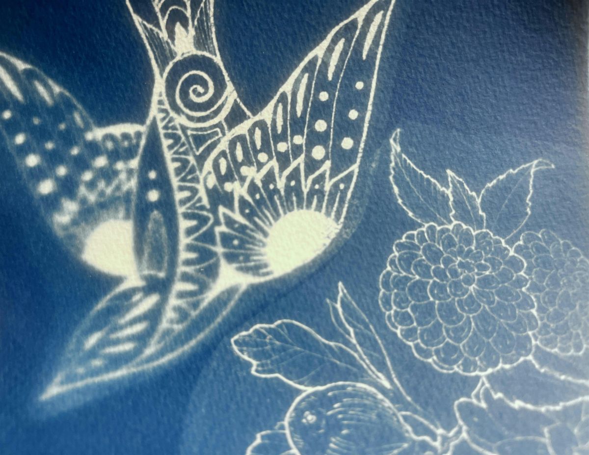 Ready to mix art and nature? Join us in person for Ink & Sun, where you’ll create stunning cyanotypes using cool tattoo flash designs and beautiful botanicals. It’s a chill way to explore sun printing, get creative, and take home your own unique artwork. No experience needed—just bring your vibe and get ready to make some magic with ink and sun!