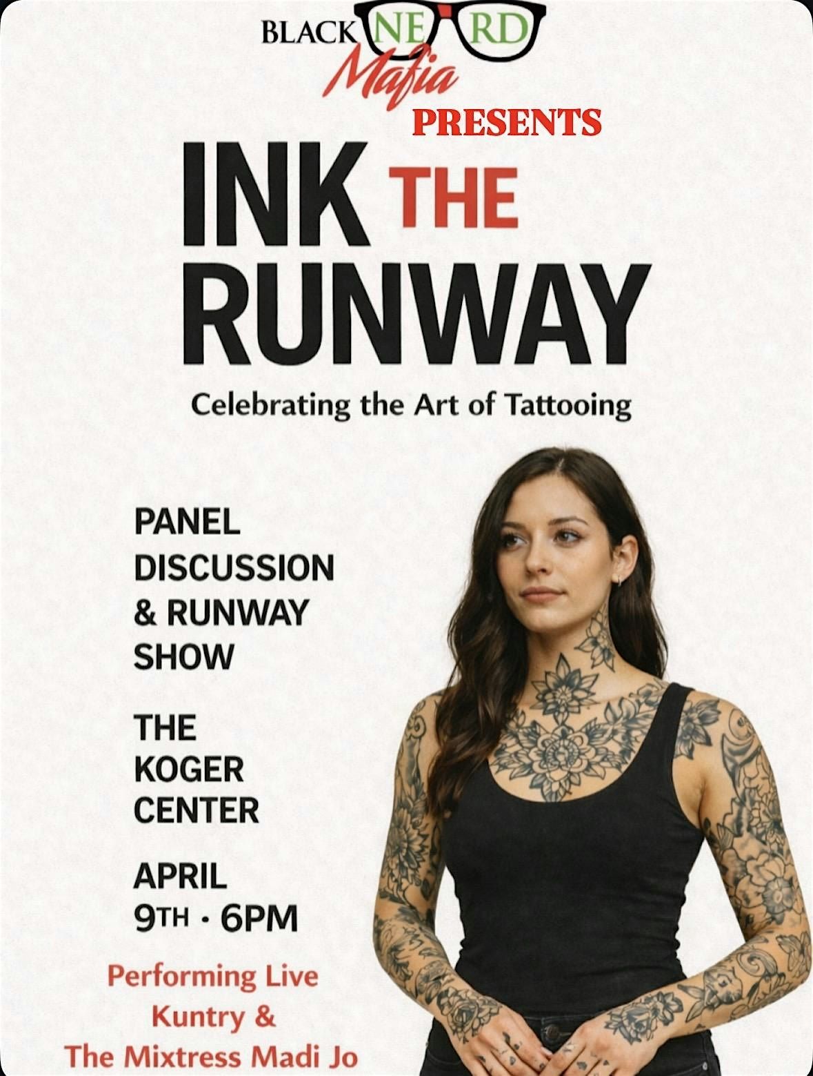 Ink The Runway is a first-of-its-kind platform designed to showcase tattooing as fine art. We’re bringing together Columbia’s most talented artists for a live panel discussion that highlights the creative process, story, and the artistry behind their work. The runway will feature their clients and other individuals whose ink tells a deeper story—just like a gallery showing brought to life.