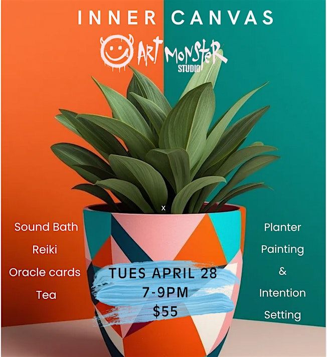 Join us at Inner Canvas: A Soulful Gathering for an evening of deep inner connection. Using the healing modalities of reiki and sound bath, combined with artistic expression, and (optional) oracle cards and tea, we will release blocks that are holding us back from connecting with our inner guidance or intuition, and leave feeling restored, relaxed, and deeply connected to self. Connect with and explore your Inner Canvas.