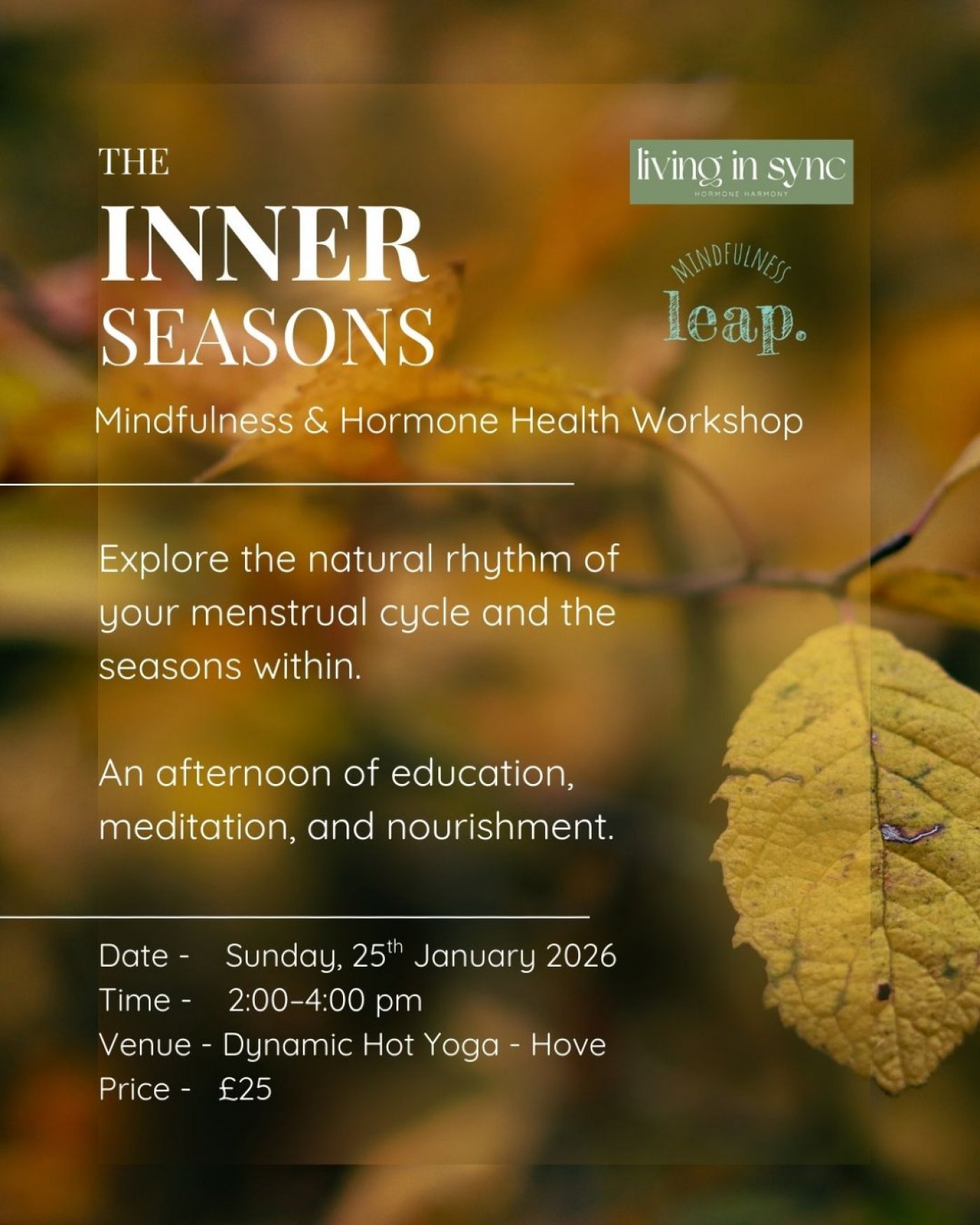 You're invited to join Sally Davis from Leap Mindfulness and Claire McGuiness from Living in Sync at a beautiful circle especially for women. Together we’re inviting you to understand more deeply about your menstrual cycle, the ebb and flow of your hormones and how meditation can improve youe overall stress responses. The link between stress and hormone imbalance has never been more present. This is an opportunity to feel rested & connected whilst informing you on how to align with your bodies natural rytham. Sally will offer guided meditations and stress management techniques, Claire will highlight the hormonal cycle and together offer tips to manage your stress in this busy world. London Nootropics Coffee and herbal tea will be served as refreshments alongside nourshing treats.