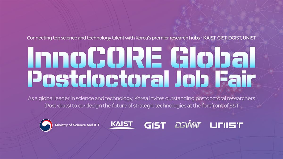 The InnoCORE GLOBAL POSTDOCTORAL JOB FAIR will be held in major cities across the United States and will offer a valuable opportunity to explore research careers and postdoctoral opportunities in Korea. The event will feature an introduction to the InnoCORE research groups, along with opportunities for one-on-one consultations and interviews with research teams based on participants’ fields of interest.