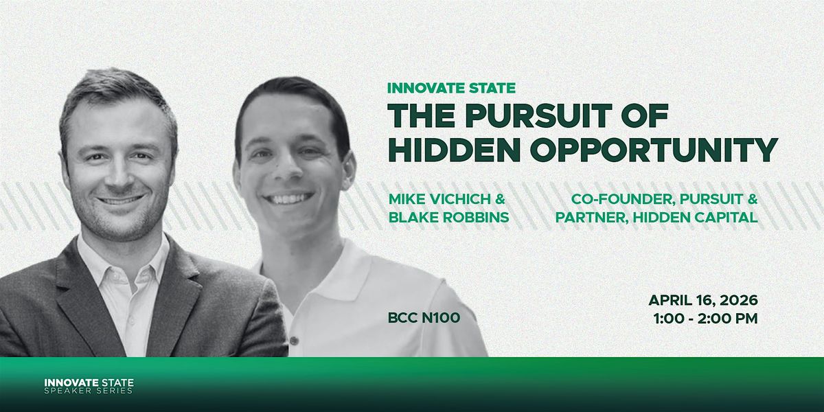 The Innovate State Speaker Series brings emerging and accomplished Spartan entrepreneurs—innovators, builders, creators, and visionaries—to campus for a live, unscripted fireside chat. These 60-minute sessions offer the chance for guests to share their perspectives on a wide array of topics like innovation, startup life, investments, and career paths. These are stories of success, stories of failures, and stories of uncommon will—and you do not want to miss them.