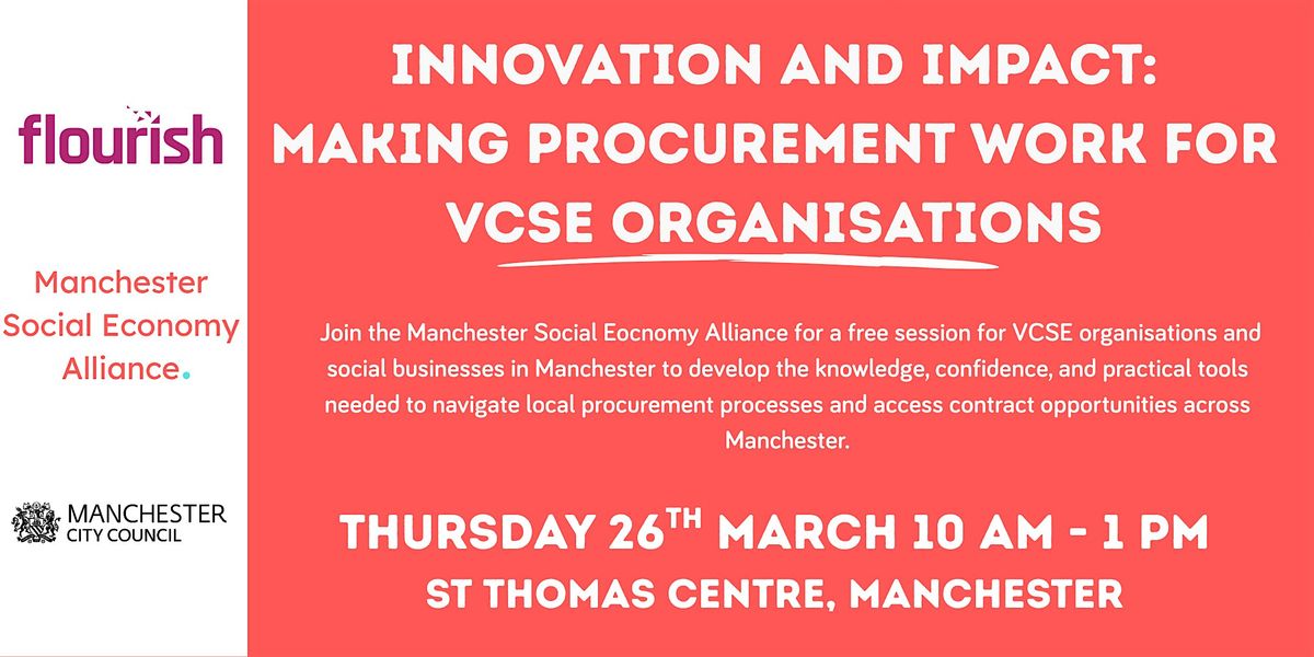 This four-hour workshop aims to create space for voluntary, community, and social enterprise (VCSE) organisations to develop the knowledge, confidence, and practical tools needed to navigate local procurement processes and access contract opportunities across Manchester.