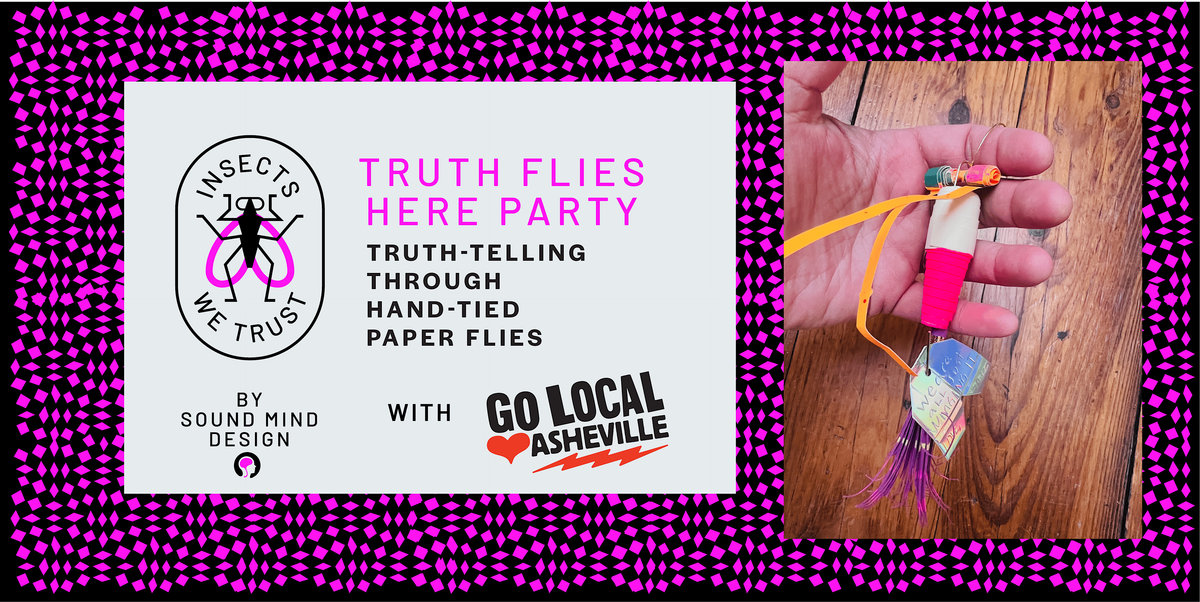 MAKE TRUTH FLIES with Go Local Asheville and Sound Mind Design at this celebratory fly-tying happy hour! Artist Jenny Fares guides participants through creating paper fishing flies that carry personal truths etched in foil. Tie a fly for yourself and leave one for someone else to find.