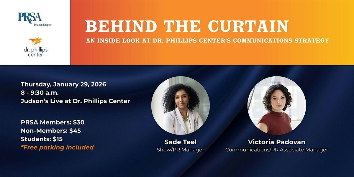 Kick off 2026 with an exclusive, behind-the-scenes look at one of Central Florida’s most iconic arts institutions in the heart of downtown. Join PRSA Orlando at Judson’s Live—the newest live music venue—as communication leaders from Dr. Phillips Center for the Performing Arts share how they bring the center’s mission, Arts for Every Life, to stages, newsrooms, and audiences around the world.
